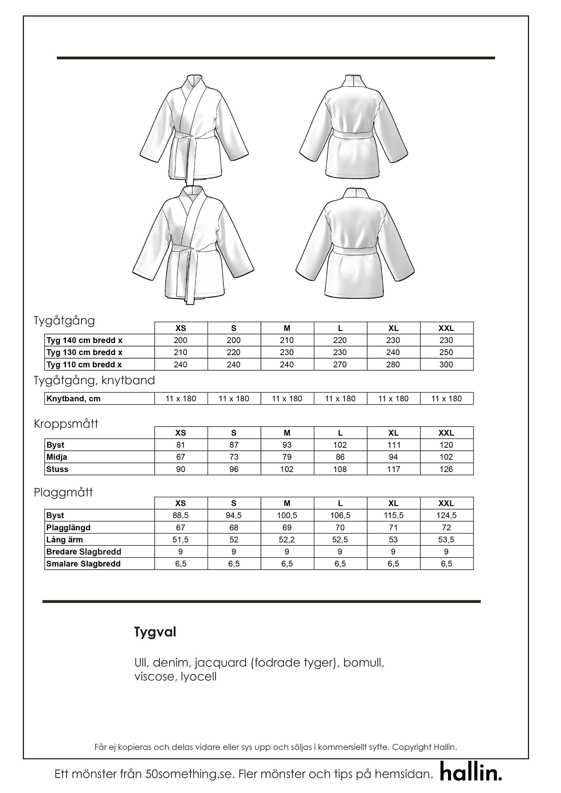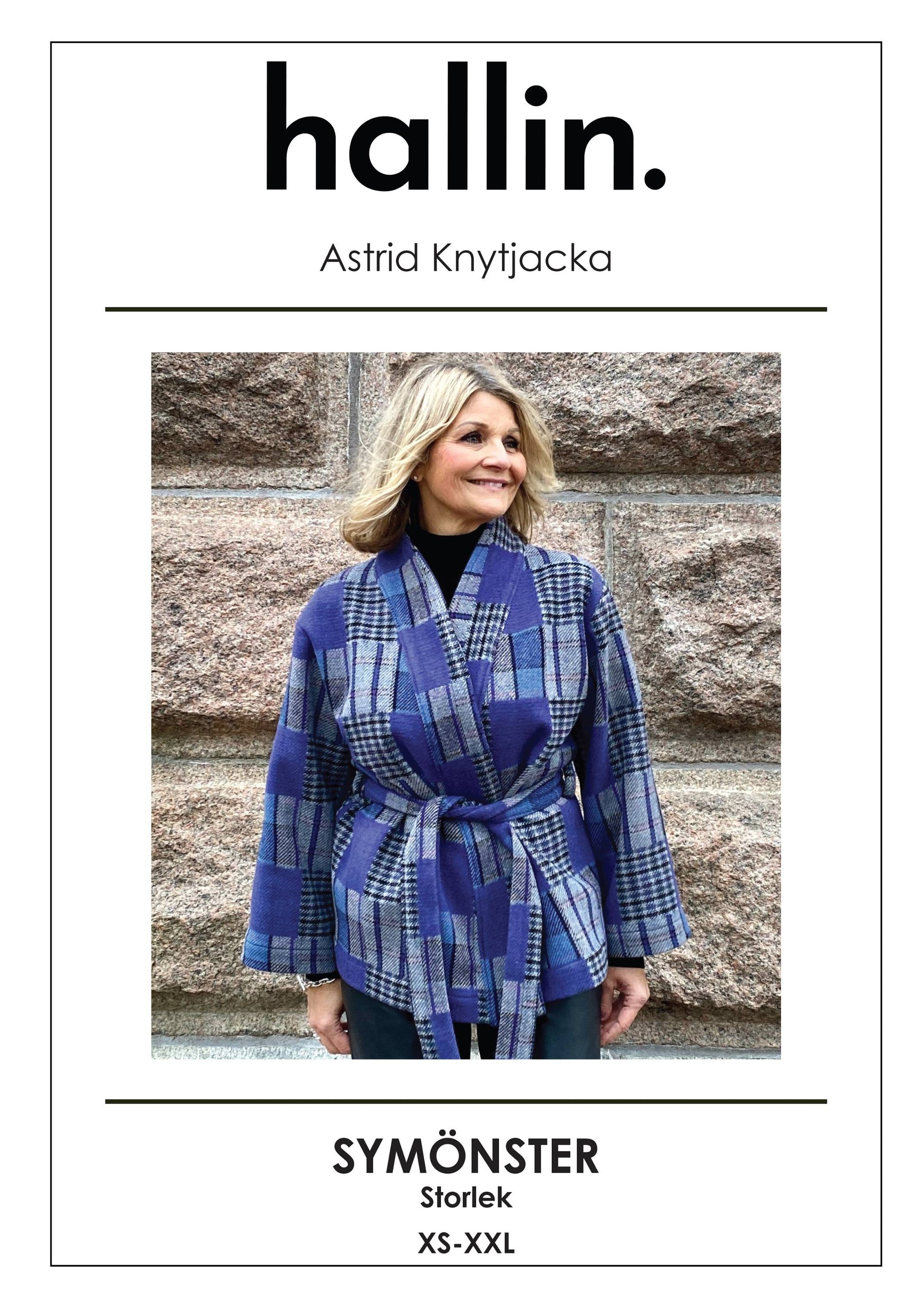 The knitted jacket Astrid is a lovely garment that can be used both indoors and outdoors, depending on the fabric you are sewing in and the weather, of course. It has a tapered and slightly shorter sleeve and is tied with a tie belt with buckles. There are additional pockets in the pattern, but in stronger fabrics these can become a bit baggy. If you want, you can also lengthen both the front and back pieces as well as the sleeves. If you extend the life, you must remember to extend the collar straps by the same amount.