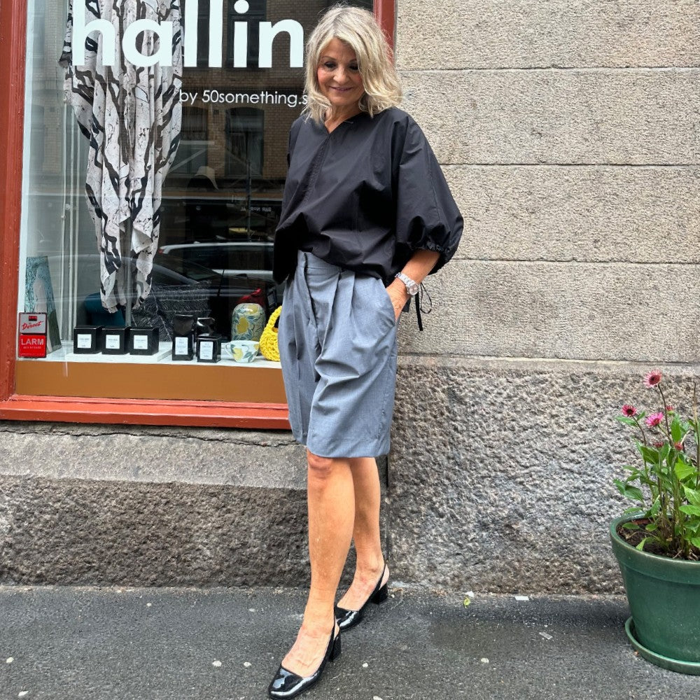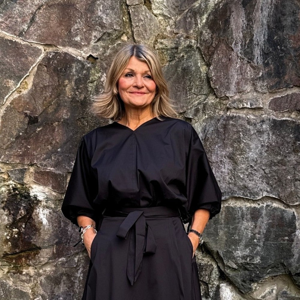 Signe finns i fyra färger, Svart, ljus Khakibeige, Mörkblå och Röd. Den svarta och ljust khakigröna blusen är i samma tyg som Ingegerd och är så fin att bära som set.