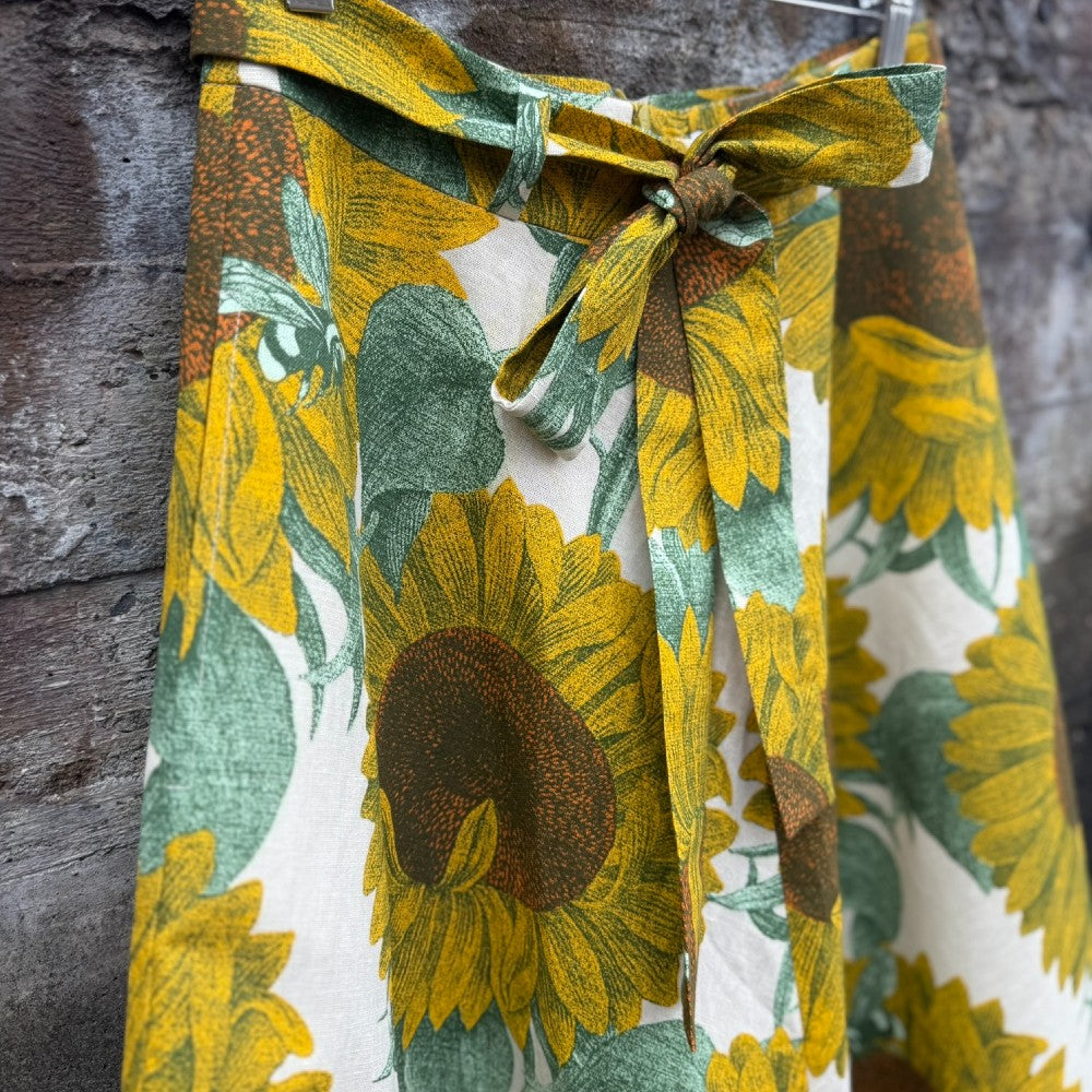 Tyget är i 50% bomull och 50% lin som trycks upp i Estland. Kjolarna sys upp i grannlandet Litauen hos mitt lilla skrädderi.