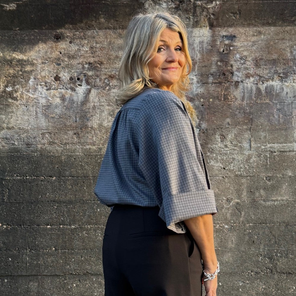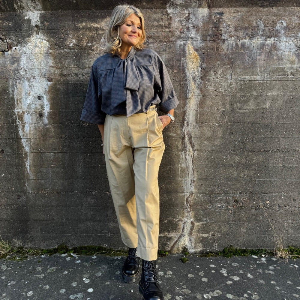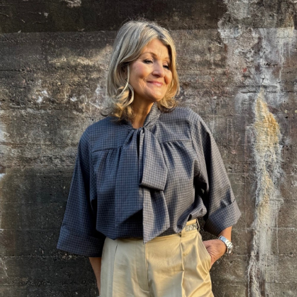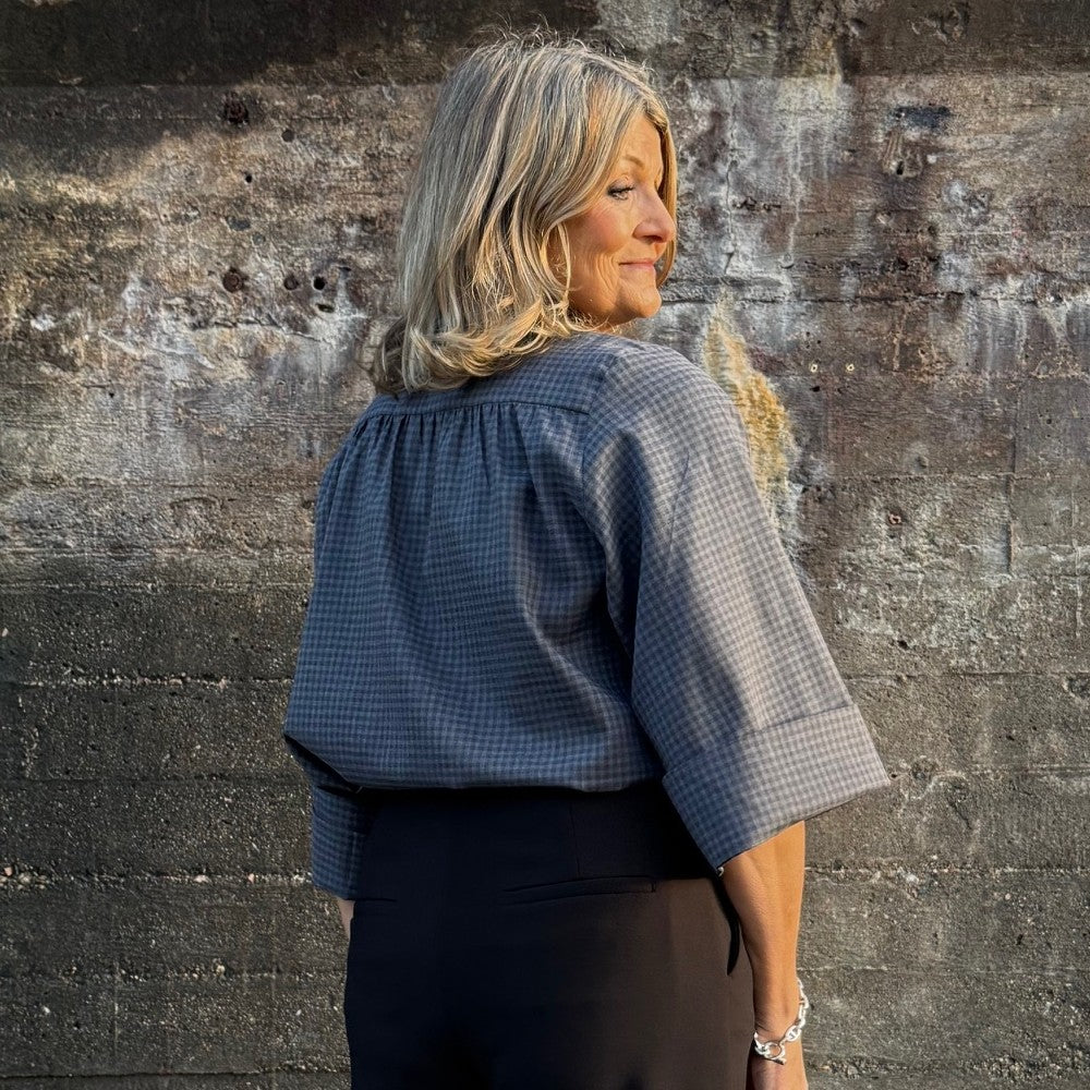 Knytblusen Birgitta är en härlig modell som passar till så många tillfällen. Klä upp med snyggare byxa eller kjol, skapa kontrast med jeans och boots/sneakers. Tyget, som är s.k leftover fabric är i en otrolig kvalitet från det svenska skjortföretaget Eton som gör herrskjortor. Jag tycker om känslan att skapa något feminint av det här tyget.