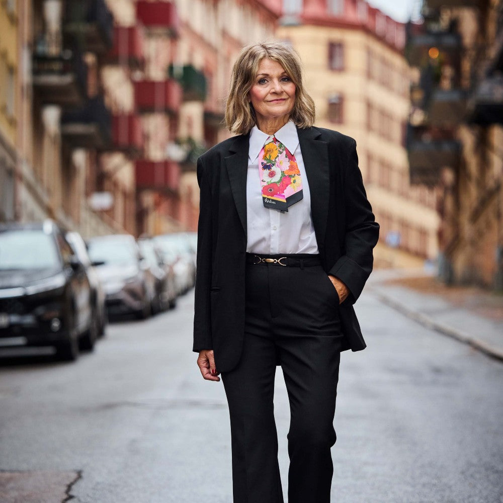 Som jag älskar mina avlånga scarfes. Jag knyter dem gärna som en slips eller mellan första och andra knapphålet som en rosett. Så glad att jag har fått möjlighet astt sälja de här nu i min webshop.